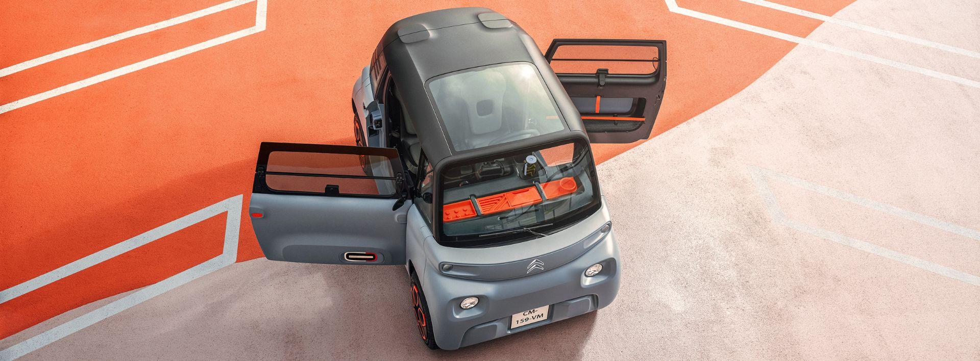 Το Citroën Ami ξεχωρίζει για τη μοναδική του σχεδίαση, με συμμετρική κατασκευή και πολλές επιλογές εξατομίκευσης.