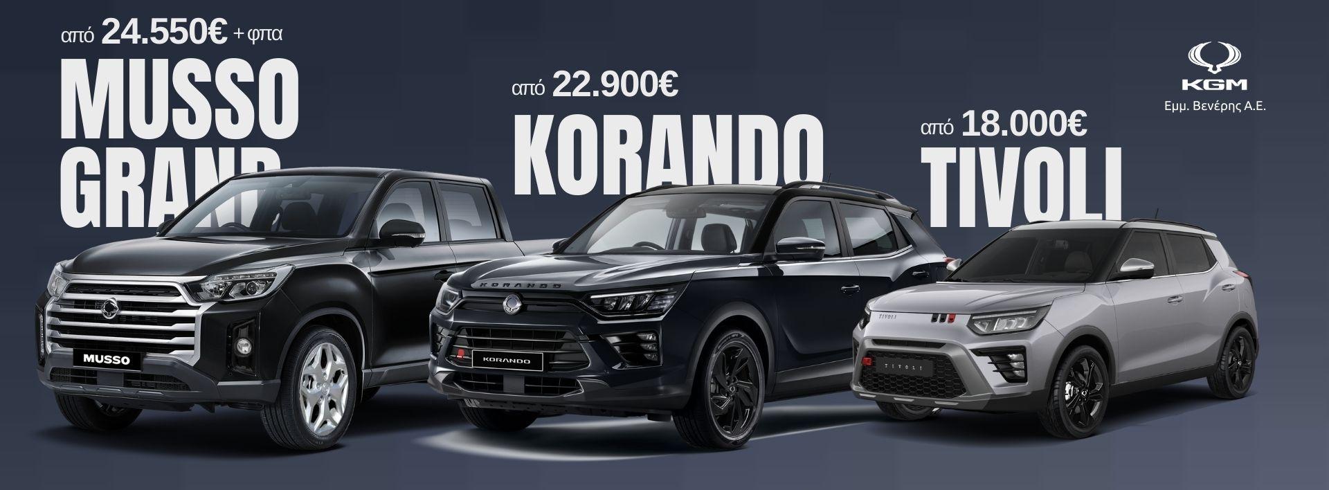 Φημισμένη για την υψηλή ποιότητα κατασκευής, σε συνδυασμό με ανταγωνιστικές τιμές, η γκάμα προϊόντων KGM ποικίλλει από συμπαγή SUV και 4x4 έως pick-up. Σας προσκαλούμε να τα δείτε από κοντά στην έκθεσή μας.