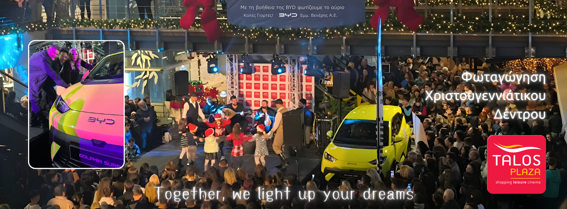 Σε μια ζεστή και γιορτινή ατμόσφαιρα στο Talos Plaza πραγματοποιήθηκε η χριστουγεννιάτικη μουσική εκδήλωση με επίκεντρο τη φωταγώγηση του δέντρου, όπου η BYD Εμμ. Βενέρης είχε φέτος έναν πραγματικά ξεχωριστό ρόλο. Η βραδιά φιλοξενήθηκε στο μεγαλύτερο εμπορικό και ψυχαγωγικό κέντρο της Κρήτης και συγκέντρωσε πλήθος επισκεπτών που συμμετείχαν με ενθουσιασμό στη γιορτή.